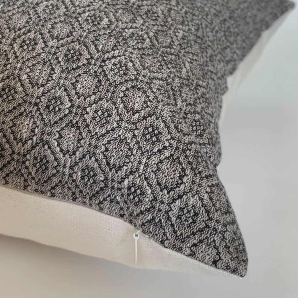 This neutral pillow cover features a refined geometric pattern in soft taupe and gray tones, adding visual interest while maintaining a calm, balanced look. The subtle contrast and clean lines make it a versatile accent that layers effortlessly with solids, plaids, or textured neutrals. Designed for modern, minimalist, organic, and transitional interiors, it adds structure and warmth without overwhelming your space. Handmade in NY!